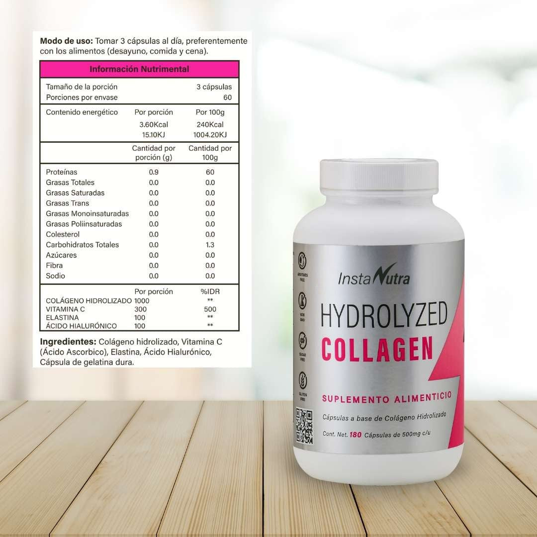 Colágeno Hidrolizado + Ácido Hialurónico, Elastina y Vitamina C – 180 cápsulas