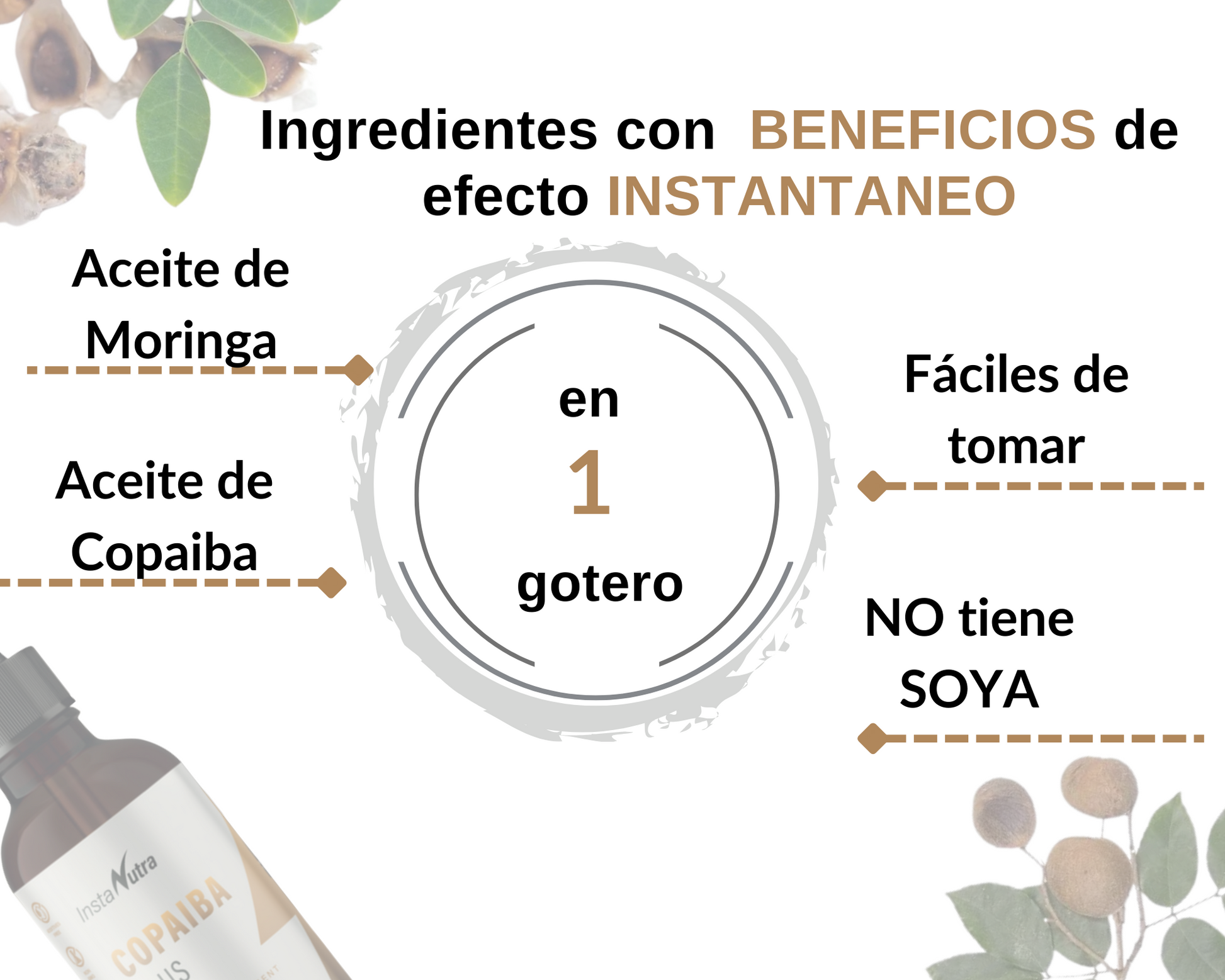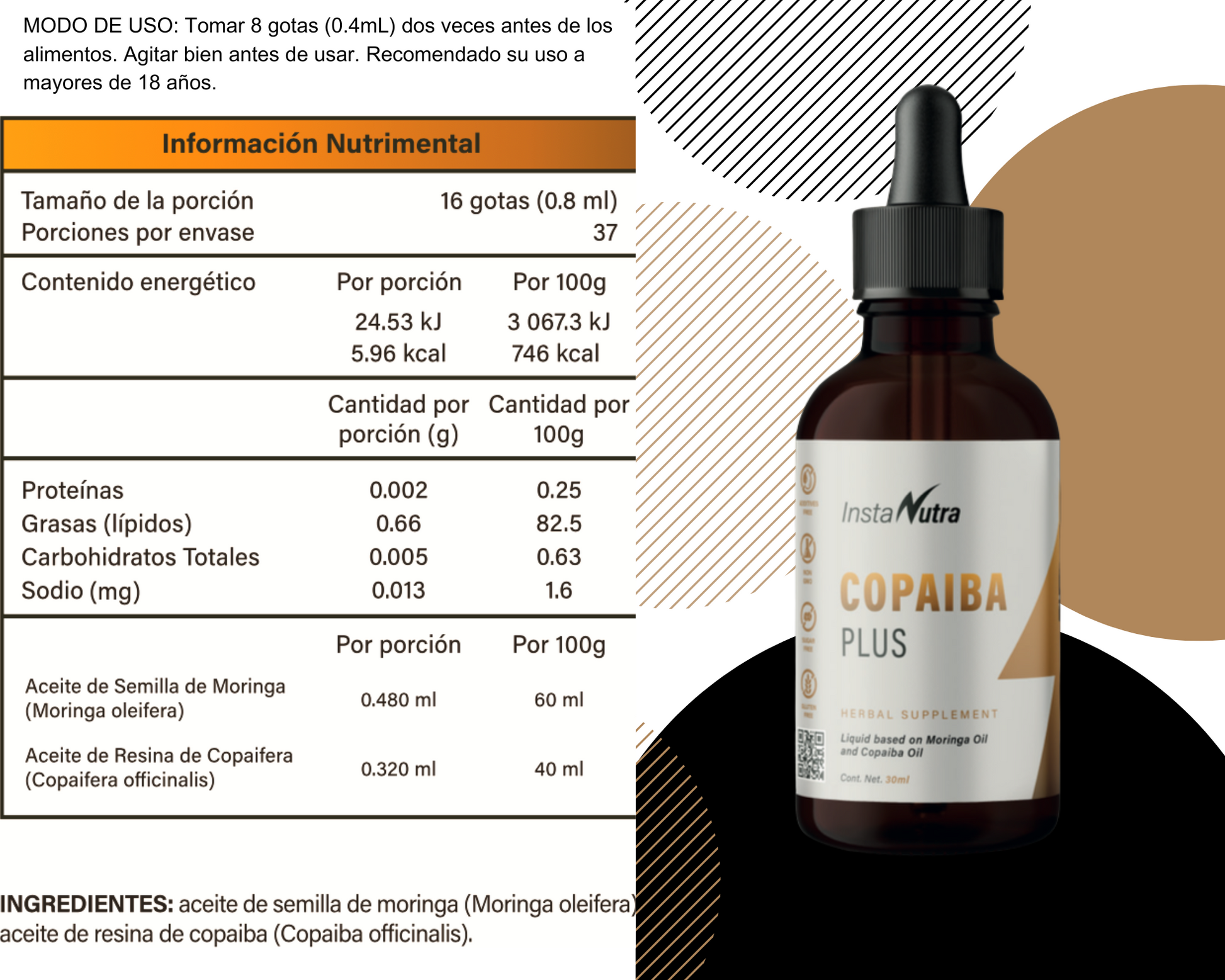 Copaiba Plus es un suplemento sublingual a base de ingredientes naturales como aceite de copaiba y moringa, ideal para acompañarte en tu rutina cuando buscas sentirte más equilibrado y en bienestar.